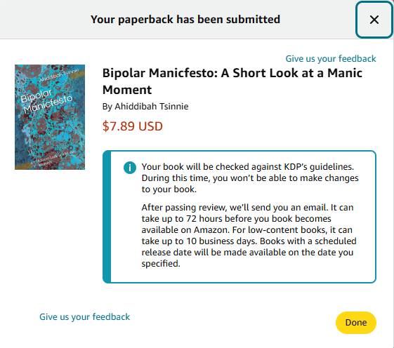 Bipolar Manicfesto is a manic moment written down. It is mental word vomit from the manic mine with some bits of helpful information about dealing with someone with bipolar. It will give you the insight you maybe never had about mental illness. There are grammar, punctuation, and spelling errors throughout. It is a raw look at the manic mind in motion.