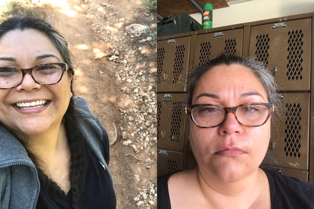 I am bipolar. These pictures were taken hours apart. I was in the middle of a mixed episode. I was feeling the very high of mania and the very low of depression. I had hurt myself recently and had wanted to hurt myself again. I needed to be hospitalized. Fortunately, I knew I had a support team to reach out to. I knew I was in crisis and needed help.